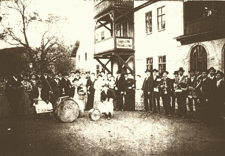 Die Kirmesgesellschaft von 1889 vor dem "Gasthof zur Linde"