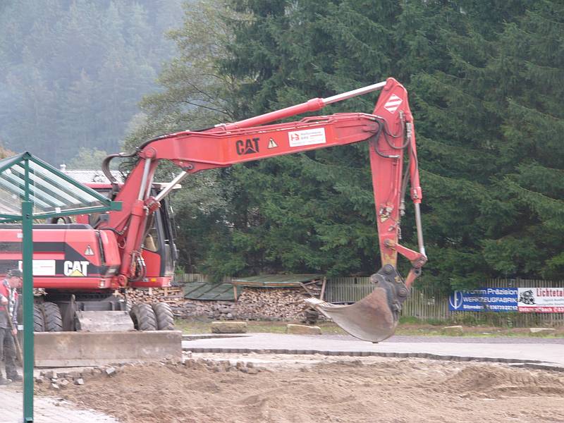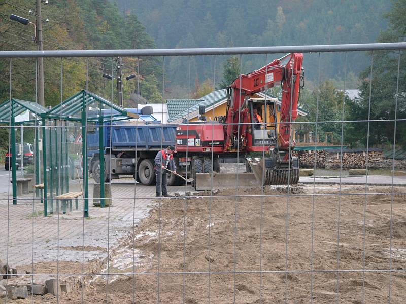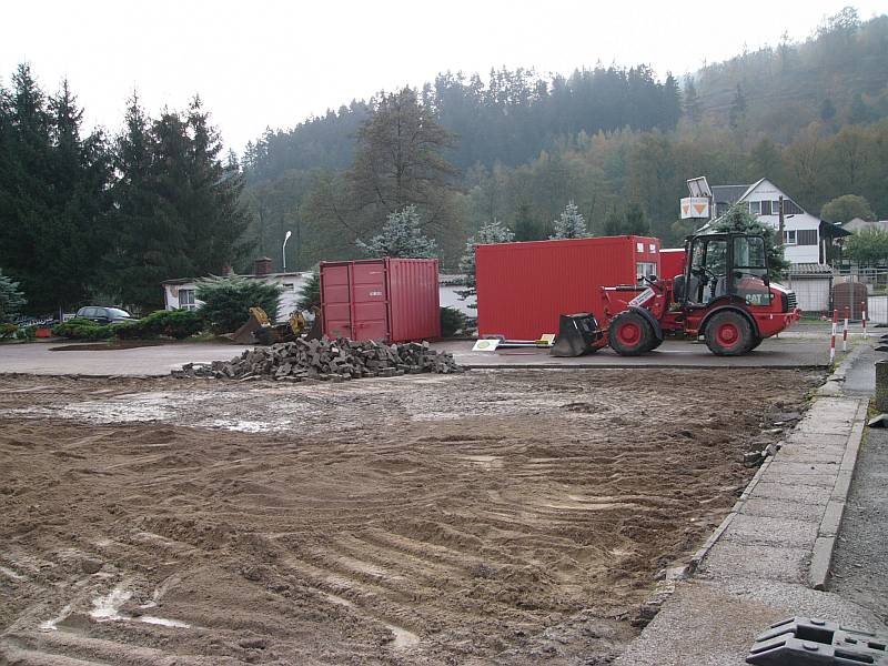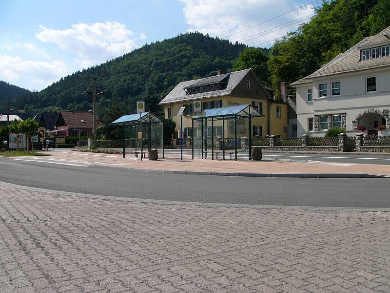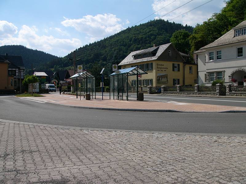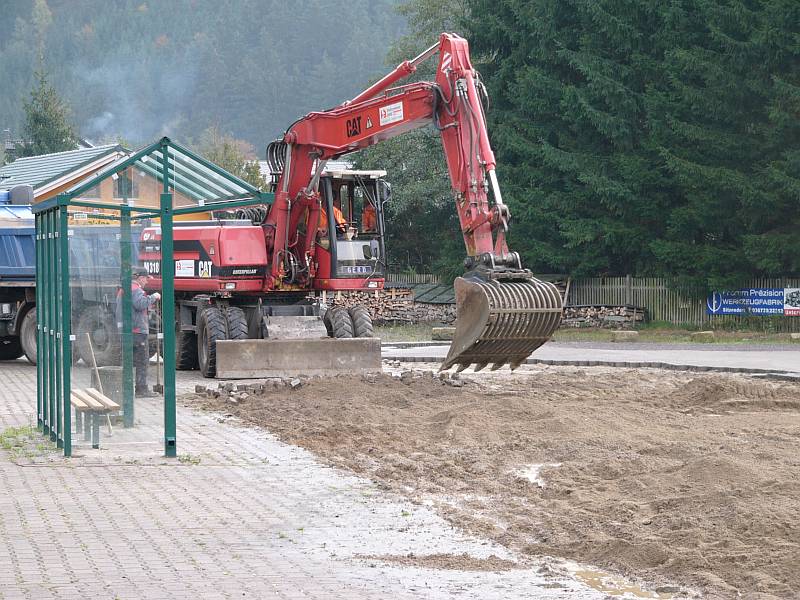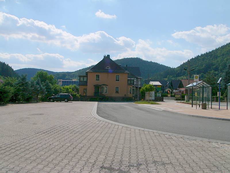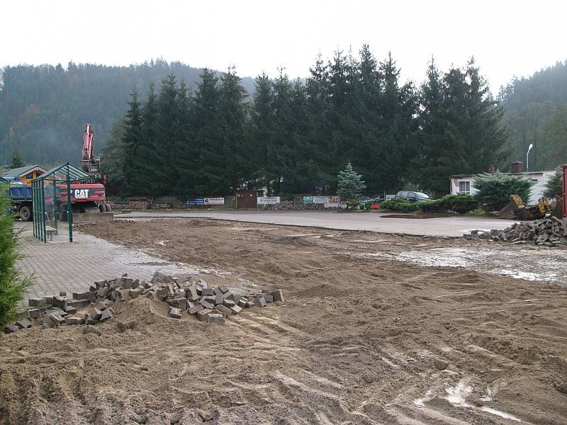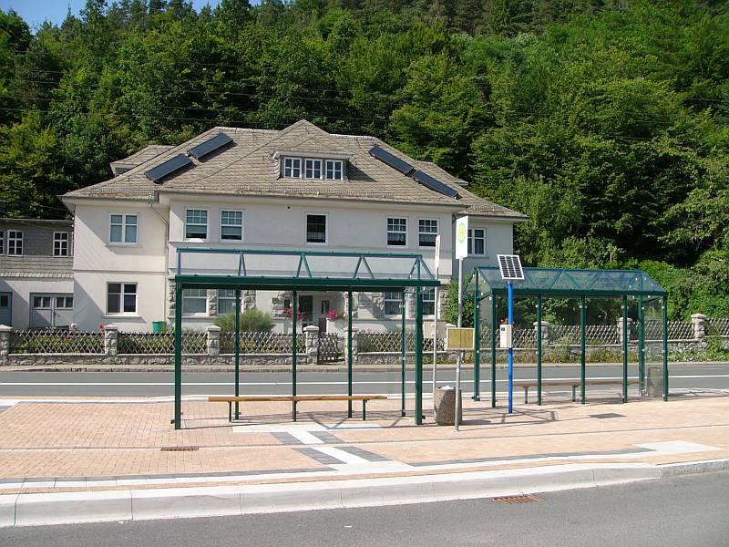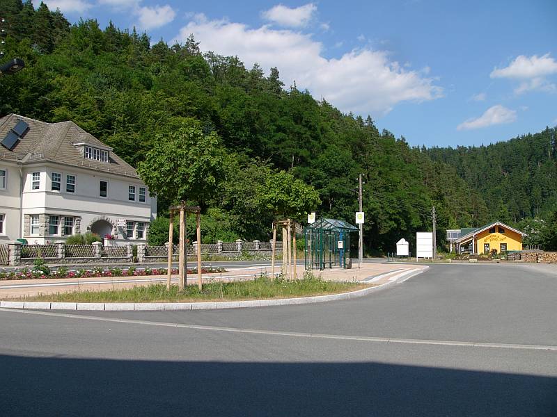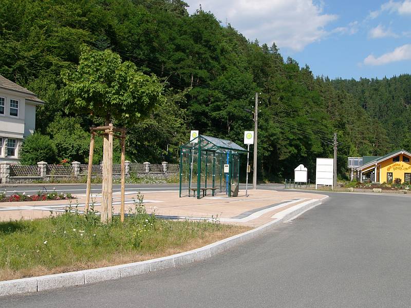 Der neue Parkplatz und die neue Bushaltestelle