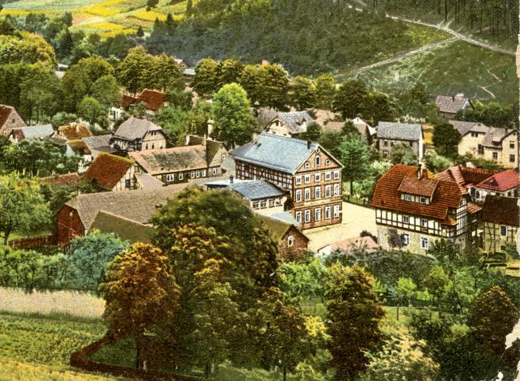 Bildmitte, die wieder aufgebaute Post. Im ersten Stock die Gaststätte Gambrinus