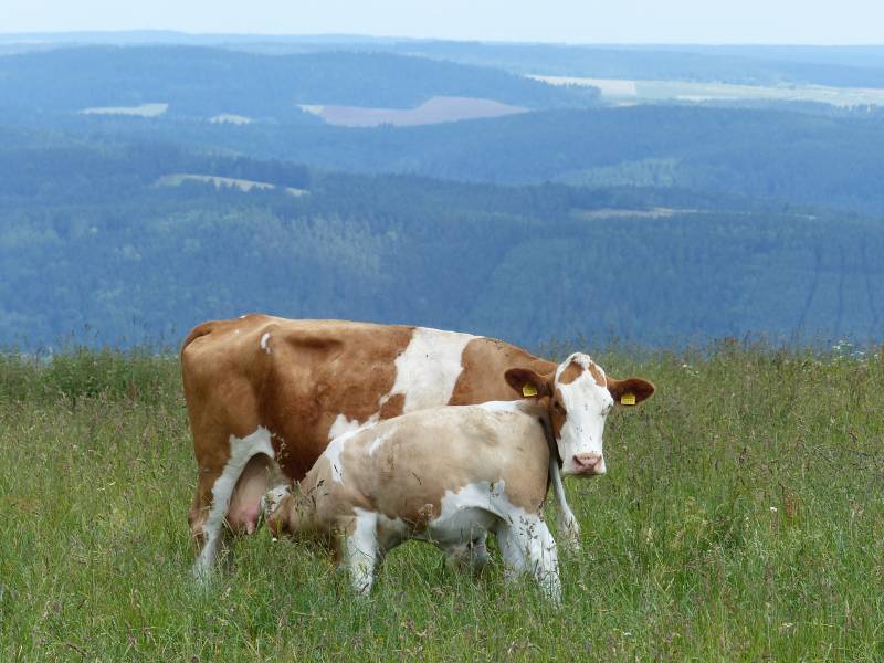 Eine glückliche Kuh mit ihrem Kalb bei Barigau