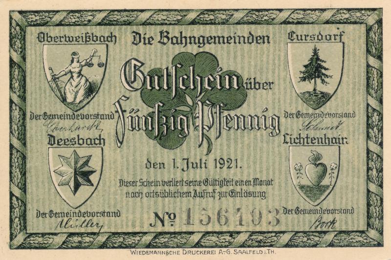 Um der so entstandenen Kleingeldnot abzuhelfen, blieb Städten und Gemeinden