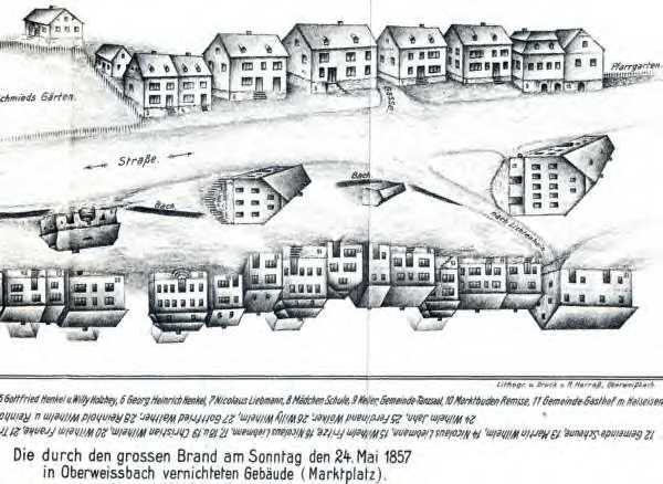 1857, den 24. Mai früh 2 Uhr kam Feuer bei Ludwig Holzhey aus, wo es oberhalb bis an