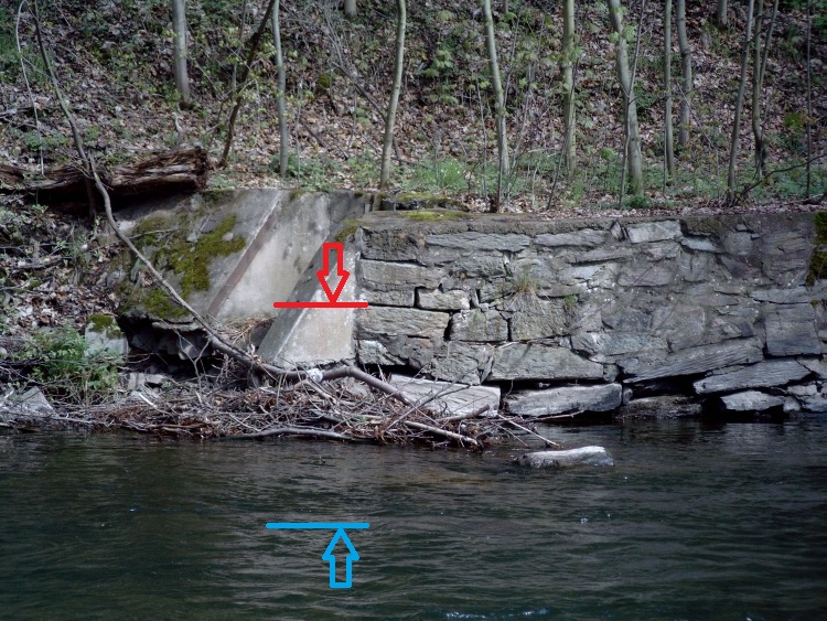Der alte Wassereinlauf liegt heute mehr als 1,5 Meter über dem Flussbett.